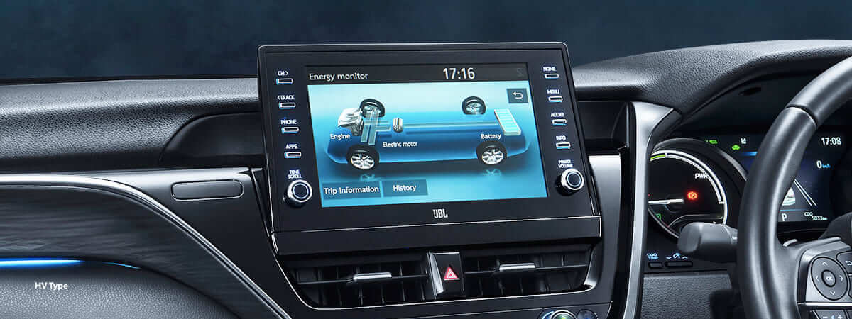 Harga Dan Spesifikasi Toyota Camry, Sedan terbaru dari Toyota, Camry, hadir dengan 3 varian. Varian tertinggi hadir dengan mesin Petrol 2487 cc, yang mampu menghasilkan tenaga hingga 176 hp dan torsi puncak 221 Nm. Camry 2.5 HV berkapasitas 5-penupang dibekali juga dengan transmisi Variable Speed CVT. Sistem keamanannya dibekali Anti Theft Device & Anti-Theft Alarm.